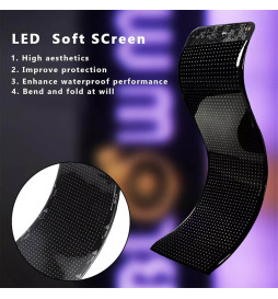 Flexibilité et Durabilité : Conçu avec un revêtement en polyuréthane (PU), le display est non seulement flexible mais aussi résistant à l'eau, avec une classification IP65 qui le rend idéal pour une utilisation intérieure et extérieure. Cette durabilité garantit que le display peut résister à des conditions difficiles telles que l'humidité, la poussière et l'exposition aux éléments, ce qui en fait le choix parfait pour les jardins, les terrasses et les espaces commerciaux en extérieur, ainsi que pour les chambres, salons ou espaces de divertissement en intérieur.