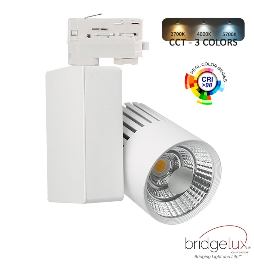 Projecteur LED 40W GRAZ Blanc Chip Bridgelux 3CCT - Rail Triphasé - 4400Lm - CRI +98