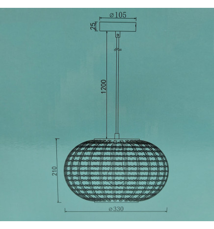 La lampe est fabriquée en osier de haute qualité, avec une finition naturelle qui lui confère un aspect chaleureux. Le câble de suspension est réglable, ce qui permet d'adapter la hauteur de la lampe jusqu'à 120 cm.