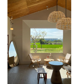 La lampe est fabriquée en osier de haute qualité, avec une finition naturelle qui lui confère un aspect chaleureux. Le câble de suspension est réglable, ce qui permet d'adapter la hauteur de la lampe jusqu'à 120 cm.