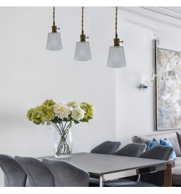 La lampe suspendue transparente pour ampoule E27 est un choix élégant et polyvalent pour tout espace intérieur. Son design simple et minimaliste s'adapte à tous les styles de décoration, du plus classique au plus moderne. Ses accessoires, tels que la douille et la garniture, sont de couleur bronze.