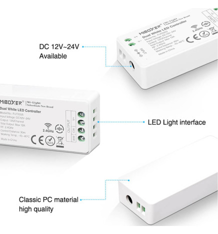Contrôleur LED - Dual Mini RF - Monochrome + CCT - 2,4GHz - 12-24V