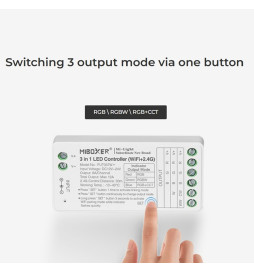 Contrôleur LED WiFi 3-en-1 RGB + RGBW + RGBCCT - RF 2,4 GHz - 12-24V