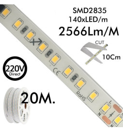 Striscia LED 220V | 140xLED/m | 20m | SMD2835 | 2566Lm/M| 19W/M | IP67 | Tagliare ogni 10cm