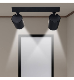 Lampada da soffitto per 2x GU10, realizzata in alluminio di alta qualità e dotata di un elegante finitura nera. Il suo design consente di orientare la luce a 360º, offrendo una totale flessibilità per dirigere l'illuminazione secondo le tue esigenze.
