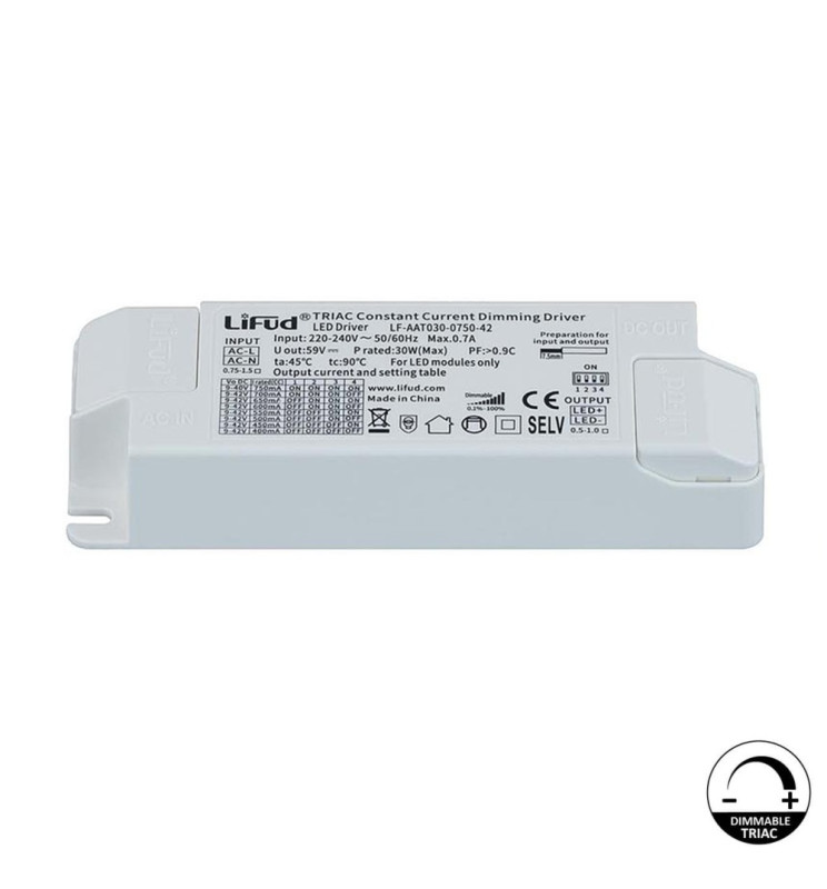 Driver Lifud – Dimmerabile TRIAC – Per apparecchi LED fino a 30W – No Flicker – Uscita 9–42V DC 400–750mA