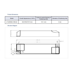- Input: AC220-240V / Output: DC9-42V 700mA-1050mA