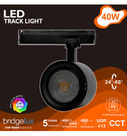 Faretto LED 40W-28W Monofase - ROMA Nero - Driver GxTronic - Ottica Regolabile 24º-60º - UGR13 - CCT