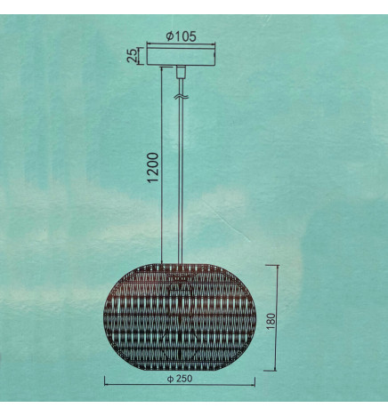 La lampada è realizzata in materiale di vimini di alta qualità, con una finitura naturale che le conferisce un aspetto caldo e accogliente. Il cavo di sospensione è regolabile, in modo da poter adattare l'altezza della lampada fino a 120 cm.