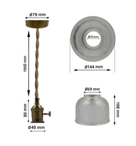 La lampada a sospensione in vetro per lampadina E27 è un'opzione elegante e versatile per qualsiasi spazio interno. Il suo design semplice e minimalista si adatta a qualsiasi stile di arredamento, dal classico al moderno. Gli accessori, come l'attacco e le finiture, sono color bronzo.