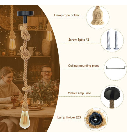 In conclusione, questa lampada a sospensione a soffitto in corda con attacco E27 è una lampada elegante e unica che può aggiungere un tocco di stile e personalità a qualsiasi spazio interno.