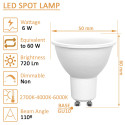 Il nostro Lampadina LED 220v con 2835 diodi OSRAM Chip SMD e presa GU10 da 6W è stato appositamente progettato per gli utilizzi in cui, a causa dell'altezza del soffitto, è necessario concentrare il fascio di luce e focalizzare la luce sulle aree desiderate grazie alla sua apertura a 100º . Il materiale di cui è fatto è alluminio e PC.