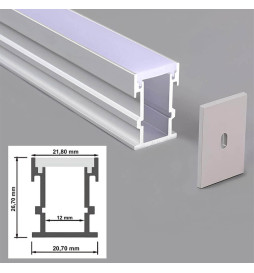 Profilo progettato per incassare nel pavimento, costruito con alluminio di grande spessore e con coperchio di elevata resistenza alla traslucenza. Il coperchio include un sistema per impedire allacqua di entrare nel coperchio.