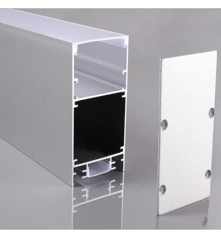 Profilo in alluminio DOPPIA LUCE perfetto per realizzare pendenti LINEARI CONTINUI, con coperchio traslucido e con una grande quantità di alluminio per una maggiore dissipazione del calore. Incorpora gli accessori di coperture e terminali. Perfette per le nostre strisce LED con alimentazione a 24v. Include i terminali finali.