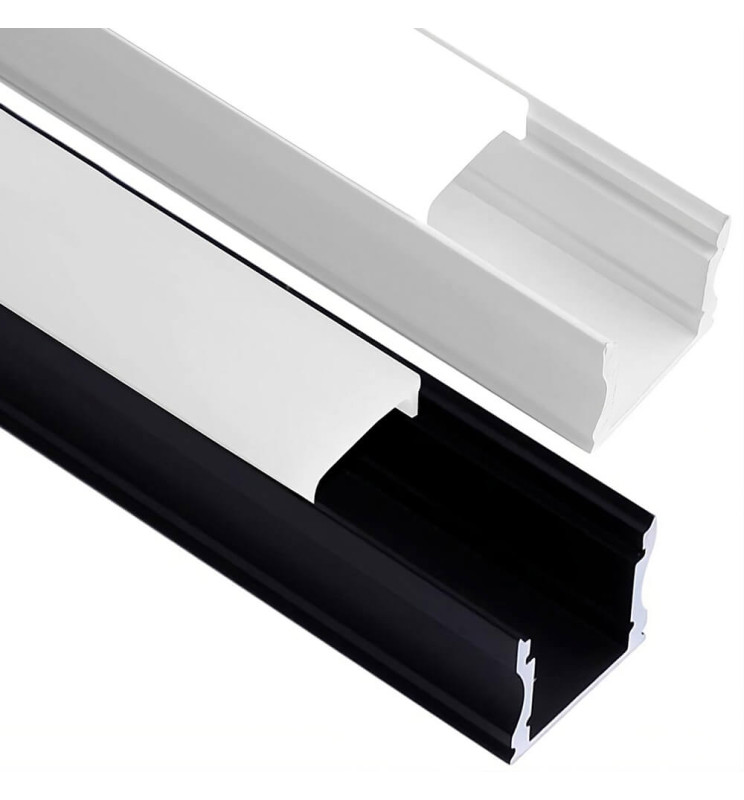 Profilo in alluminio per striscia LED, opzione colore Bianco e Nero. Vernice epossidica cotta. Con i profili puoi creare una grande varietà di sensazioni visive, creare nuove sensazioni e ridefinire lo spazio, cambiare casa e lavoro, hai infinite possibilità alla portata della tua immaginazione. Tappi terminali + Morsetti inclusi.