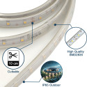 Inoltre, l'installazione è facile e veloce. La striscia, lunga 2.50 metri, offre la flessibilità necessaria per posizionarla ovunque si desideri. Che si tratti di delineare percorsi, illuminare gradini o decorare il pergolato, questa striscia LED solare è perfettamente adatta alle vostre esigenze di illuminazione.
