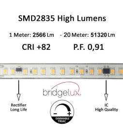 140 Leds/meter SMD2835 BRIDGELUX CHIP høy effekt.