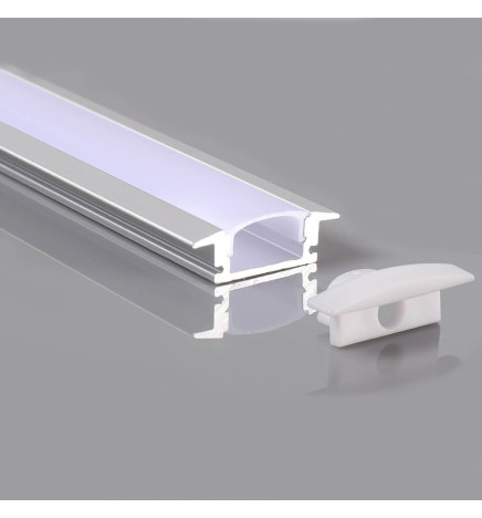 Aluminiumsprofil for LED-stripe, perfekt for vegger og tak, for å passe og legge inn i alle slags materialer som tre, gipsplater, gips osv. Vingformene på profilen gjør avslutningen av plasseringen perfekt. Produktet inkluderer alt tilbehør: deksel, terminaler og festeklips.