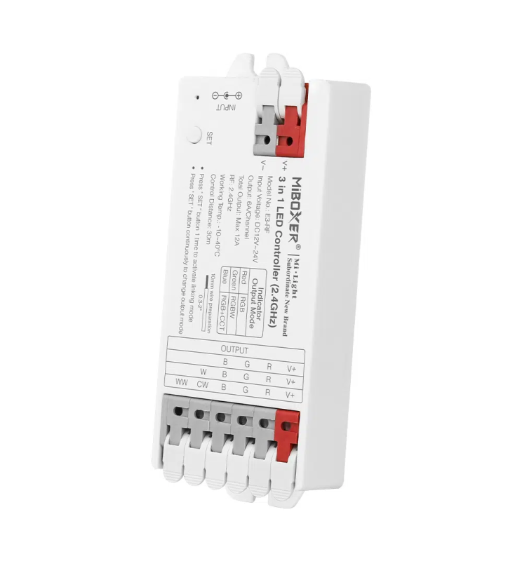 Kompatibel med Mi-Light/MiBoxer-fjernkontroll: Fungerer på 2,4 GHz-frekvensen og er fullt kompatibel med fjernkontrollene i Mi-Light- og MiBoxer-serien, noe som gir sømløs og praktisk integrering for brukeren.