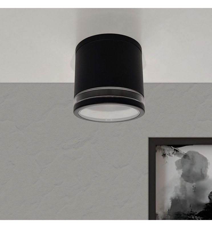 Denne Taklampe svart aluminium har en dekorativ ring som selve GU10-pæren vil lyse opp, noe som gjør den doble ringeffekten, som samtidig vil belyse området og gi den en varm og koselig belysning som gir den et elegant og moderne preg. (GU10-pære ikke inkludert)