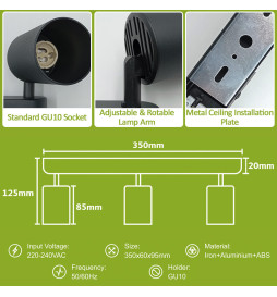Justerbar Taklampe - AMSTERDAM SORT - Aluminium - for 3 GU10-pærer