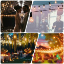 Denne lysslyngen inkluderer 8 LED filamentpærer på 4W hver, som kombinerer en vintage estetikk med energieffektiv LED-teknologi. Den avgir et varmt og innbydende lys som fremhever innredningen i ethvert område, og skaper en unik og behagelig atmosfære for utendørs middager, vennemøter, bryllup, restauranter eller kommersielle lokaler.