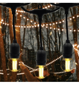 Forvandle ethvert område med vår LED E27 Lysslynge, designet for å gi en elegant, varm og koselig atmosfære til terrasser, hager, uteplasser, fester og spesielle arrangementer. Med en robust konstruksjon og et allsidig design er denne lysslyngen det ideelle valget for både privat og kommersiell bruk.
