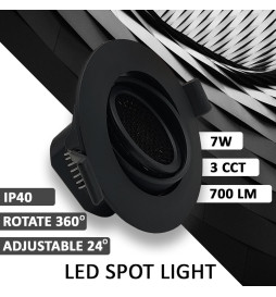 LED Downlight 7W - Svart Sirkulær - Justerbar Spotlys - UGR19 - CCT Valgbar Farge