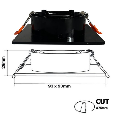 Den svarte firkantede rammen for GU10 og LED-typer dichroic-moduler har en stilfull finish som smidig integreres i enhver interiørdekor, og legger til et snev av sofistikasjon. I tillegg gjør den kompakte størrelsen og lette vekten installasjon og håndtering enkel.