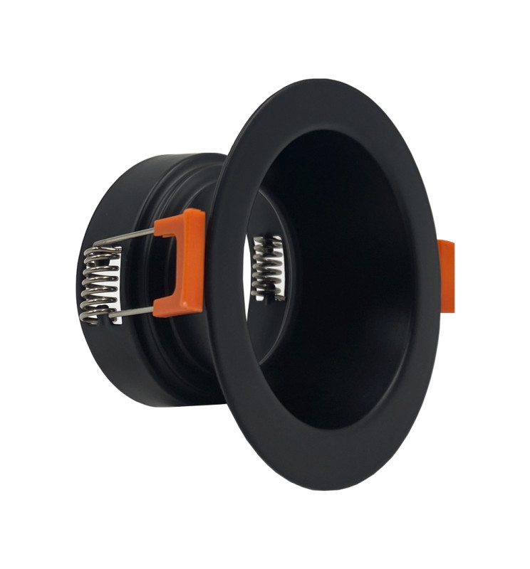 Sirkulær ring i aluminium med svart finish, elegant og eksklusivt design. Ringen er designet for bruk med GU10 eller MR16 LED-dikroiske lamper. Den er perfekt for nybygg eller for å skifte pærer. Den er laget for montering innendørs, f.eks. i soverom, korridorer, stuer eller boder.