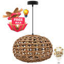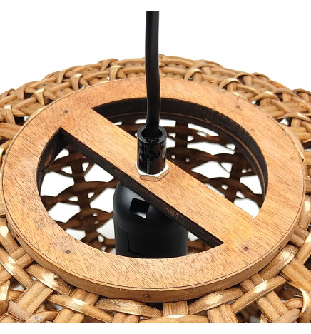 Lampen er laget av flettet materiale av høy kvalitet, med en naturlig finish som gir den et varmt og koselig utseende. Opphengskabelen er justerbar, slik at du kan justere høyden på lampen opp til 120 cm.