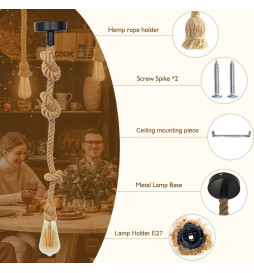 Denne tekstilampen i flettet tau er enkel å montere og leveres med alt nødvendig tilbehør for montering.