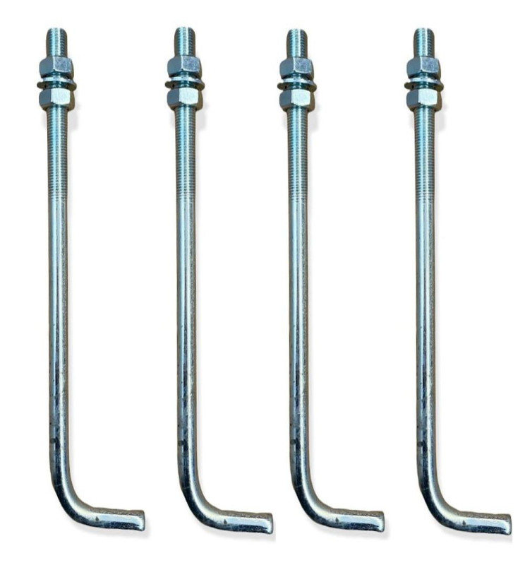 Sett med 4 jordforankringsbolter for lyssøyle - Forsinket stål - 16 mm