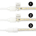 Installasjonen er enkel takket være det innovative hurtigklikk-systemet. Bare fest LED-stripene til koblingsenheten med et sikkert klikk, og nyt en stabil og pålitelig tilkobling. Du trenger ingen kompliserte verktøy eller teknisk kunnskap, denne koblingsenheten er designet med din komfort i tankene.