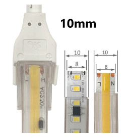 Dette settet er spesielt egnet for 220V IP65 LED-striper laget av silikon eller PVC, med en bredde på 10 mm (PCB 8 mm) eller 12 mm (PCB 10 mm).