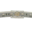 Takket være IP65-designet gir Hippo-koblingen effektiv beskyttelse mot fukt, støv og sprut, noe som gjør den ideell for innendørs og utendørs bruk. Det raske “klikk”-låsesystemet muliggjør en presis forbindelse mellom stripene, og sikrer utmerket strøm- og fargeoverføring uten tap eller flimring.