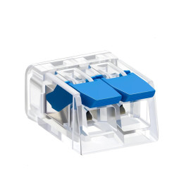 O conector rápido de 2 entradas, modelo KV221-415, foi projetado para facilitar conexões elétricas rápidas e seguras em uma ampla variedade de sistemas de iluminação, bem como em instalações elétricas temporárias e permanentes.