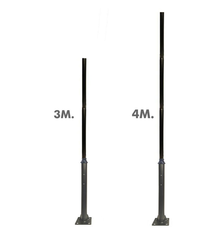 Serviço imediato: Coluna, mastro, bastão para poste de iluminação pública, áreas residenciais, vias, urbanizações. Fabricado em tubo de aço galvanizado Ø89mm ja Ø60mm, com espessura de 2mm de diâmetro, pintado em preto texturizado - RAL9005 - de máxima qualidade de poliéster para grande dureza e resistência. Fácil transporte e montagem, pode ser montado em 3 ou 4 peças, o que facilita muito a instalação por apenas uma pessoa.