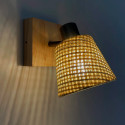 Este candeeiro de parede com casquilho E14 necessita de uma lâmpada não incluída. É feito de alumínio com um abajur de vime e uma base de madeira, o que o torna ideal para uma decoração natural com um estilo elegante.