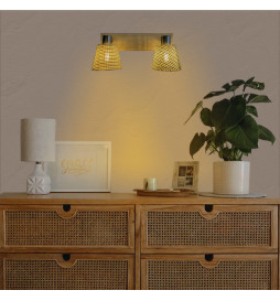 Compre hoje o seu candeeiro de vime com casquilho E14 X2 e desfrute de uma iluminação natural e elegante em sua casa. O candeeiro NÃO inclui lâmpadas, para ver as nossas lâmpadas E14 clique no botão: