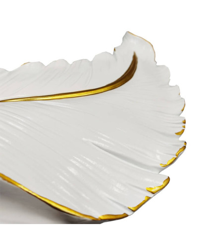 O candeeiro de parede é fabricado em cerâmica de alta qualidade, com um acabamento branco e toques dourados que lhe conferem um aspeto moderno e sofisticado. Este candeeiro de parede destaca-se pela forma como ilumina os espaços, pois a luz incide na parede e devolve-a à divisão, criando um efeito de retroiluminação.