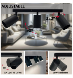 Adjustable Ceiling Spotlight for 3 GU10 Bulb, made of Alumínio, combines versatility and functional design. Its easy installation and adjustable feature allow you to direct light in any direction, ideal for tailoring illumination to your needs. Perfect for reading corners, shop windows, or product displays. A practical and elegant solution to highlight your spaces!
