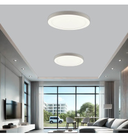 Equipado com diodos SMD2835 de 140 Lm/W, este plafon + downlight garante uma excelente eficácia luminosa, oferecendo uma alta luminosidade que permite uma ampla cobertura sem a necessidade de múltiplas fontes de luz. O ângulo de abertura de 120º é ideal para fornecer uma iluminação uniforme em qualquer ambiente, desde residências até lojas e escritórios, destacando-se por sua capacidade de iluminar áreas amplas com uma luz suave, mas eficaz.