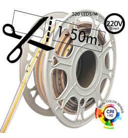 Fita LED COB 220V |Bobina 50M| 320 LED/m | 50m | FLIP CHIP | 800Lm | 10W/M | CRI90 | IP65 | Corte 50 cm