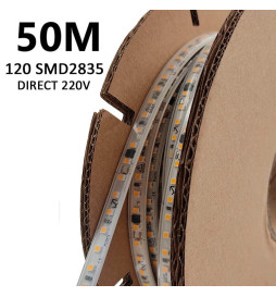 Fita LED 220V | 120xLED/m | 50m | SMD2835 | 800Lm/M | 8W/M | IP65 | Corte a cada 10 cm