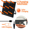Para além da sua função principal de iluminação, este projetor solar portátil é uma solução completa para as suas necessidades energéticas. Equipado com uma função de Power Bank, pode tirar partido da sua capacidade de carregamento para alimentar os seus dispositivos electrónicos enquanto se aventura fora de casa. A capacidade de carregamento USB garante uma comodidade adicional, permitindo-lhe recarregar facilmente o projetor em qualquer lugar com acesso a uma fonte de alimentação USB.