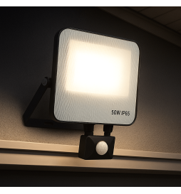 Projetor LED Aurora 50W SMD2835 Lumileds 140Lm/W. Equipado com um sensor de movimento PIR removível através de conector Jack e controle remoto para máximo conforto. O acendimento automático ao detectar movimento o torna ideal para mais segurança e economia de energia. Resistente à água e poeira (IP65), suporta chuva e neve sem problemas. A melhor opção para uma iluminação potente, versátil e durável!