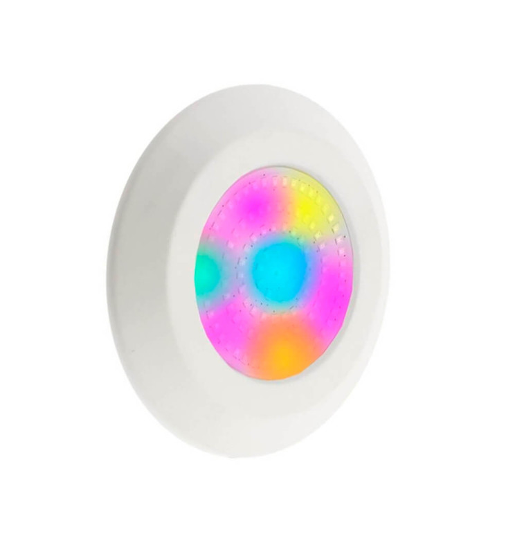 Holofotes LED RGB subaquática concebida para substituir os focos de halogéneo em piscinas. O projector tem um grau de protecção contra o acesso de partículas, pó ou líquidos de IP68, neste caso pode funcionar durante uma imersão completa e contínua.