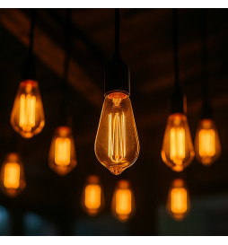 É ideal para dar um estilo retro para sua casa em ocasiões especiais ou em seu negócio, tem um índice de reprodução de cores muito alto mostrando as cores reais, tem um tipo de tampa E27 e uma grande eficiência luminosa de 100lm/w.