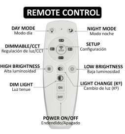 Com tecnologia CCT (Correlated Color Temperature), é possível escolher luz quente, neutra ou fria. O controle remoto permite ajustar cor e intensidade da luz.